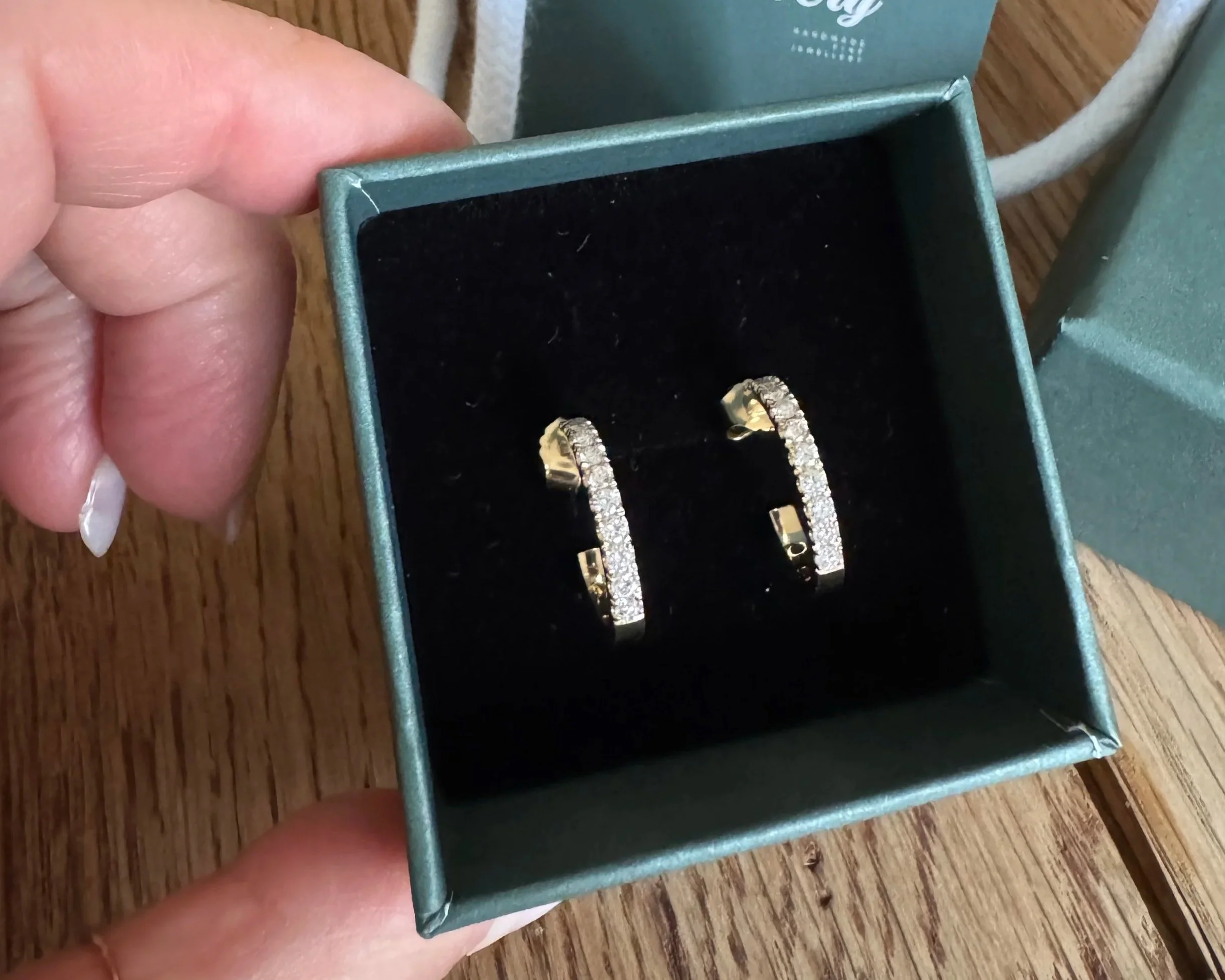 A vintage platinum engagement ring was taken apart, the platinum exchanged for gold, and the diamonds remodelled into a pair of beautiful hoop earrings