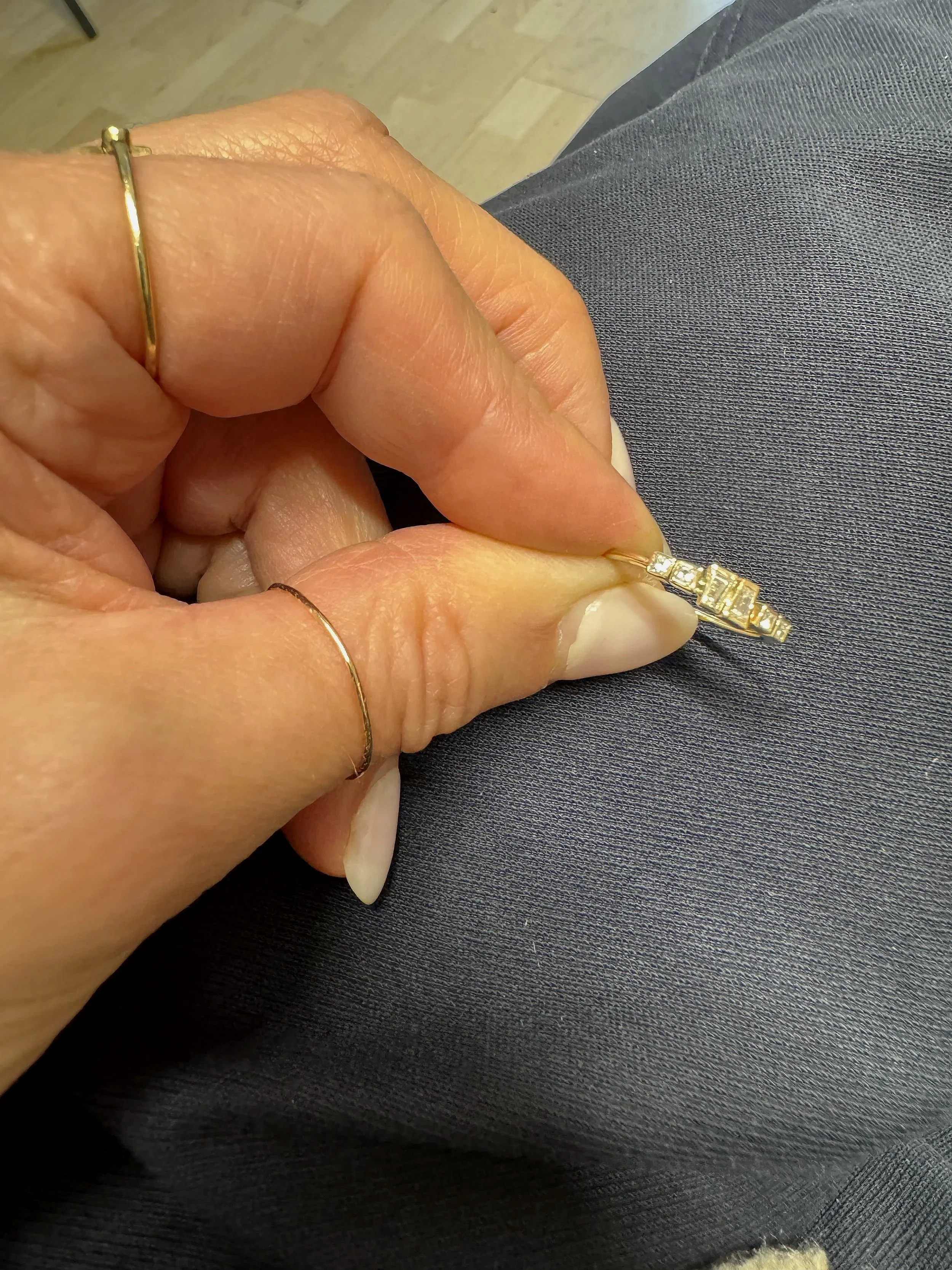 A set of tiny asymmetrical diamonds was remodelled into a beautiful delicate and unique ring in the Brenn & Berg signature micro style